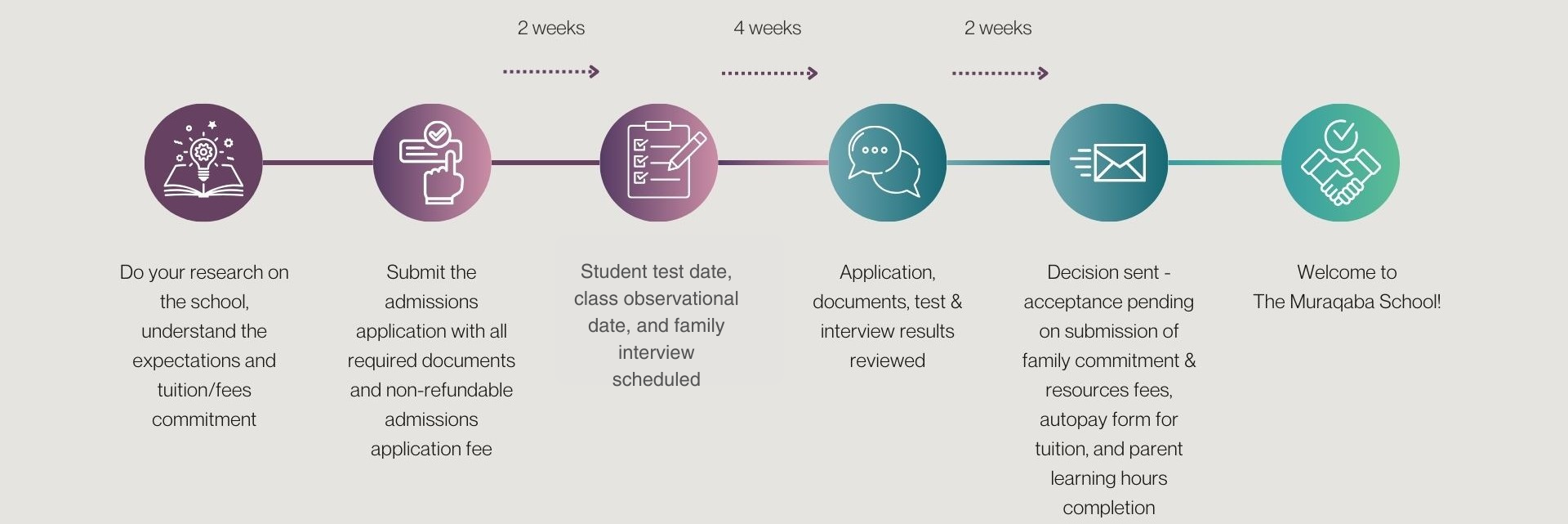 The admissions process is an approximately 8-week timeline from submitting your application to receiving a decision.